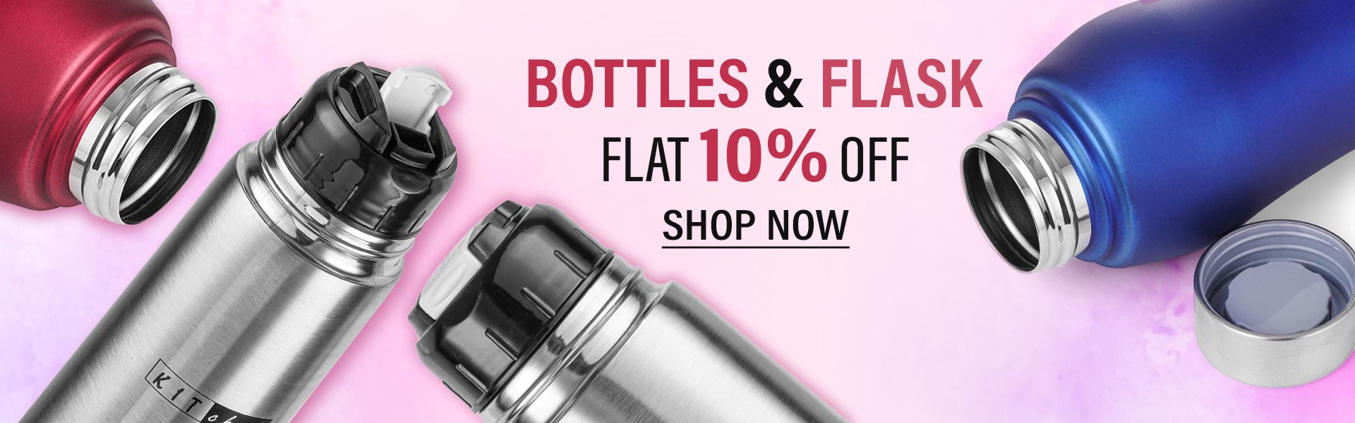Stainless Steel Flat Water Bottle (1 L Each,Silver) - Set of 2