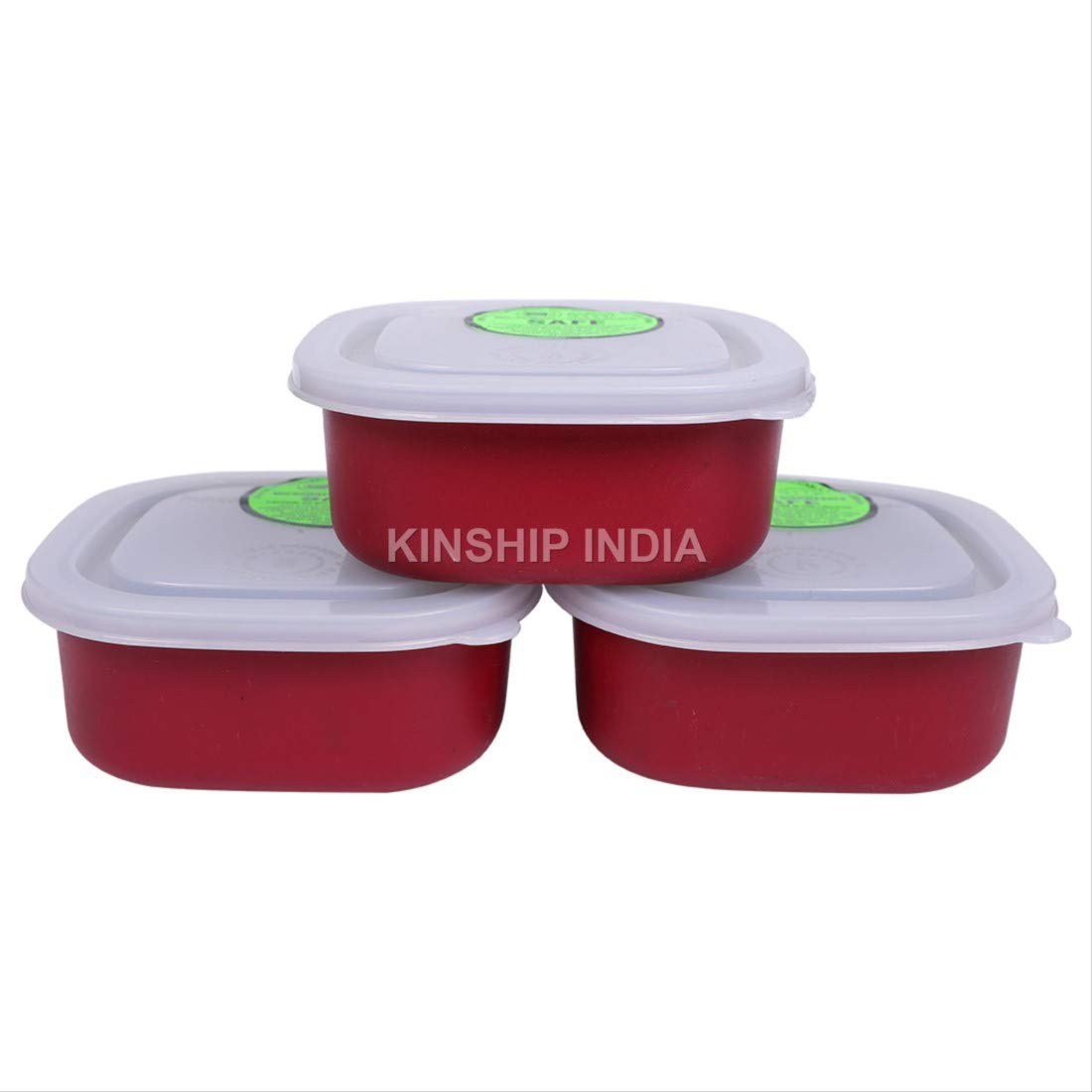 Microwave Safe Stainless Steel Small Square Lunch Containers Set of 3 {350 ML} (RED)