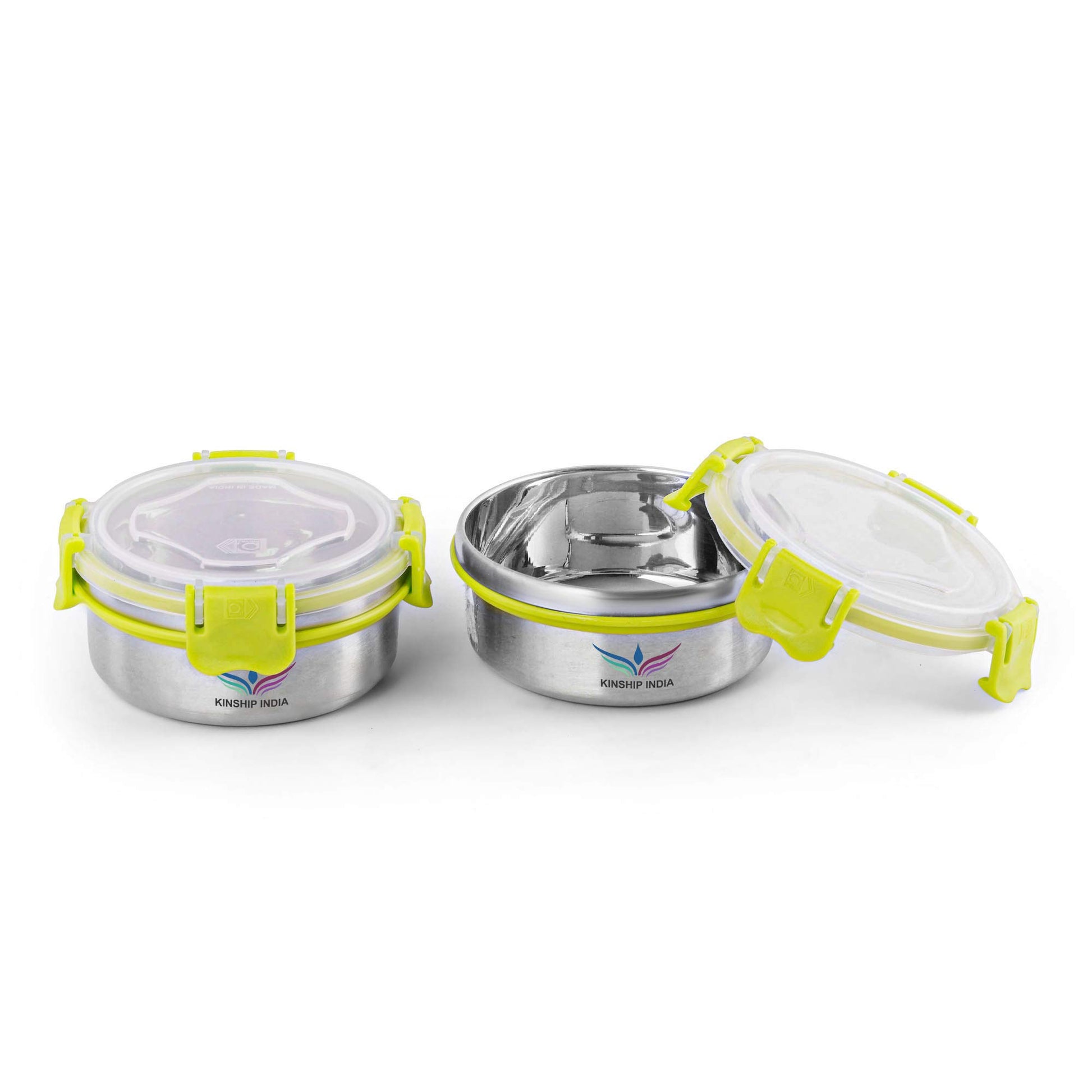 Stainless Steel Designer Smart Lock Tiffin Box -2 Containers (300 ml,10 cm,Green)