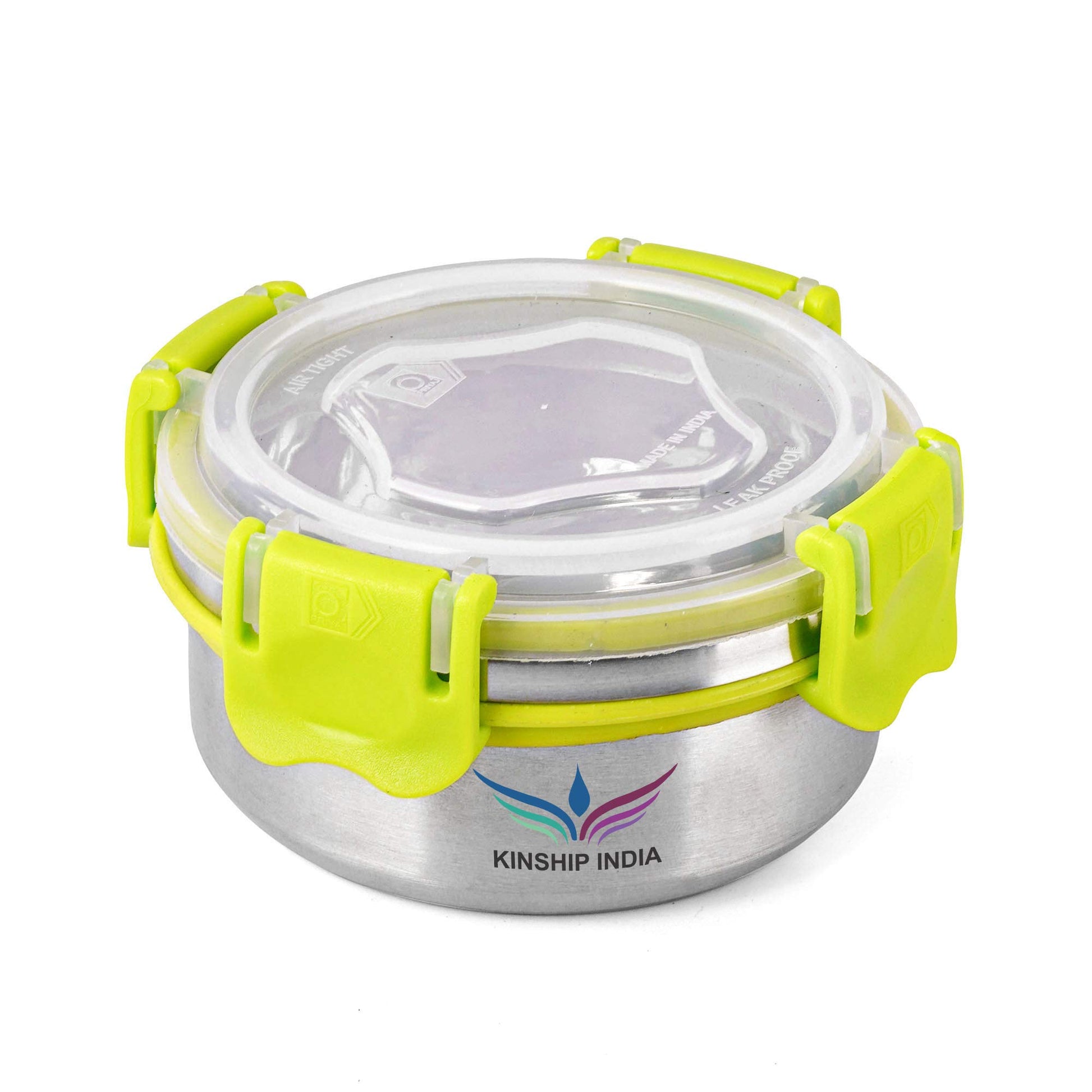 | This Stainless Steel Lunch Box is ideal for keeping food hot, fresh and safe for long. Presenting an international concept kinship fresh products are made of sturdy fabric hygienic stainless steel containers for storing food free from any health hazard and fresh for long hours. As the name itself states kinship fresh, now enjoy freshly packed food in these air tight stainless steel containers. The lid of the containers consists of food grade silicon seal that locks in the freshness and retains the moisture of food for long hours. Virtually airtight and liquid-tight seals include 4 side lock for easy opening of the container. Stop your worries of spilling of food contents from the lunch box kinship fresh lunch packs is one shop solution that addresses all your precautions before carrying lunch. |