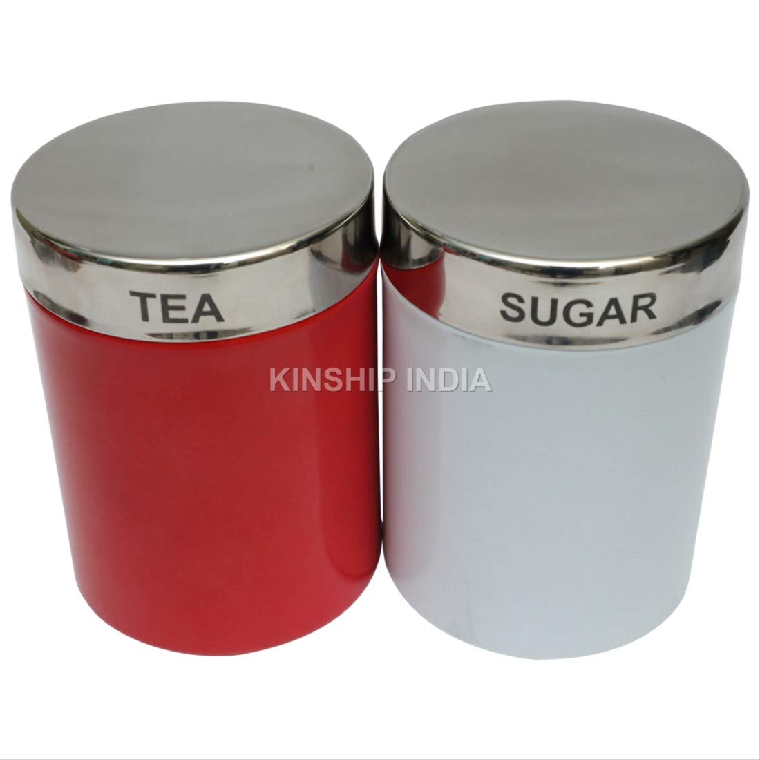 Stainless Steel Tea And Sugar Canister (1400 ml) 2 Pieces, Red White